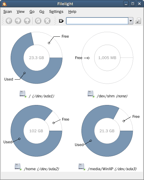 可以看出,在主界面,FileLight 比 disk-usage-analyser 直观得多。